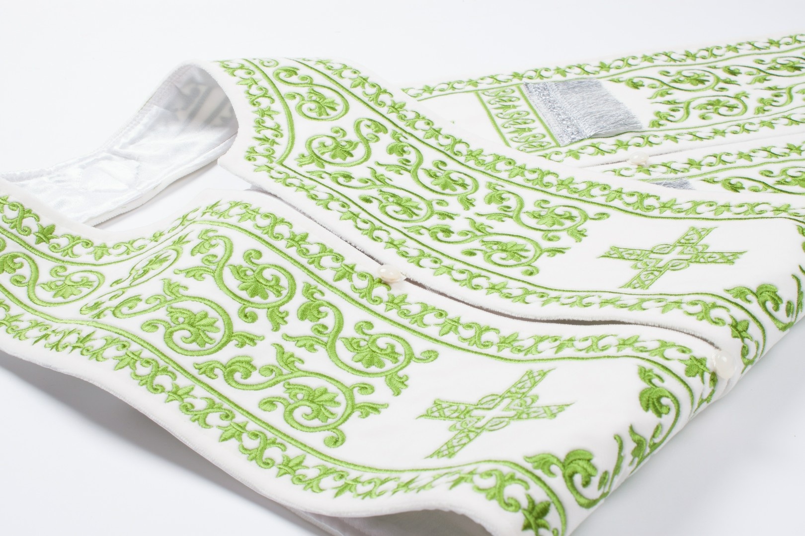 The fabrics used to sew liturgical vestments must meet a series of aesthetic, functional, and symbolic requirements. The choice of material is not arbitrary: each texture, color, and sheen carries a meaning that reinforces the liturgical message. At the same time, the vestments must be durable, comfortable, and easy to care for; therefore, carefully selected fabrics are used in the making of sacred garments.